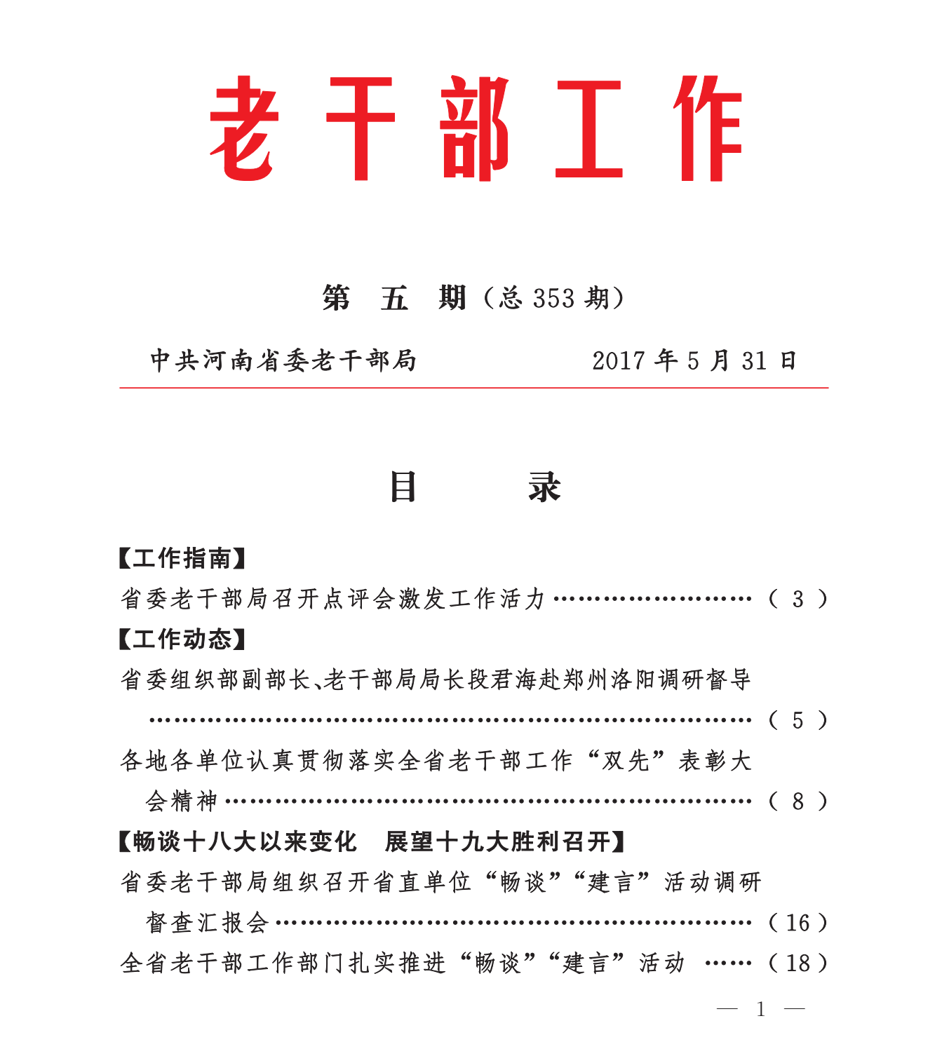 《老干部工作》2017年第5期(目录)