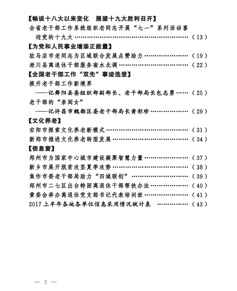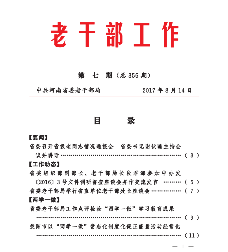 《老干部工作》2017年第7期(目录)