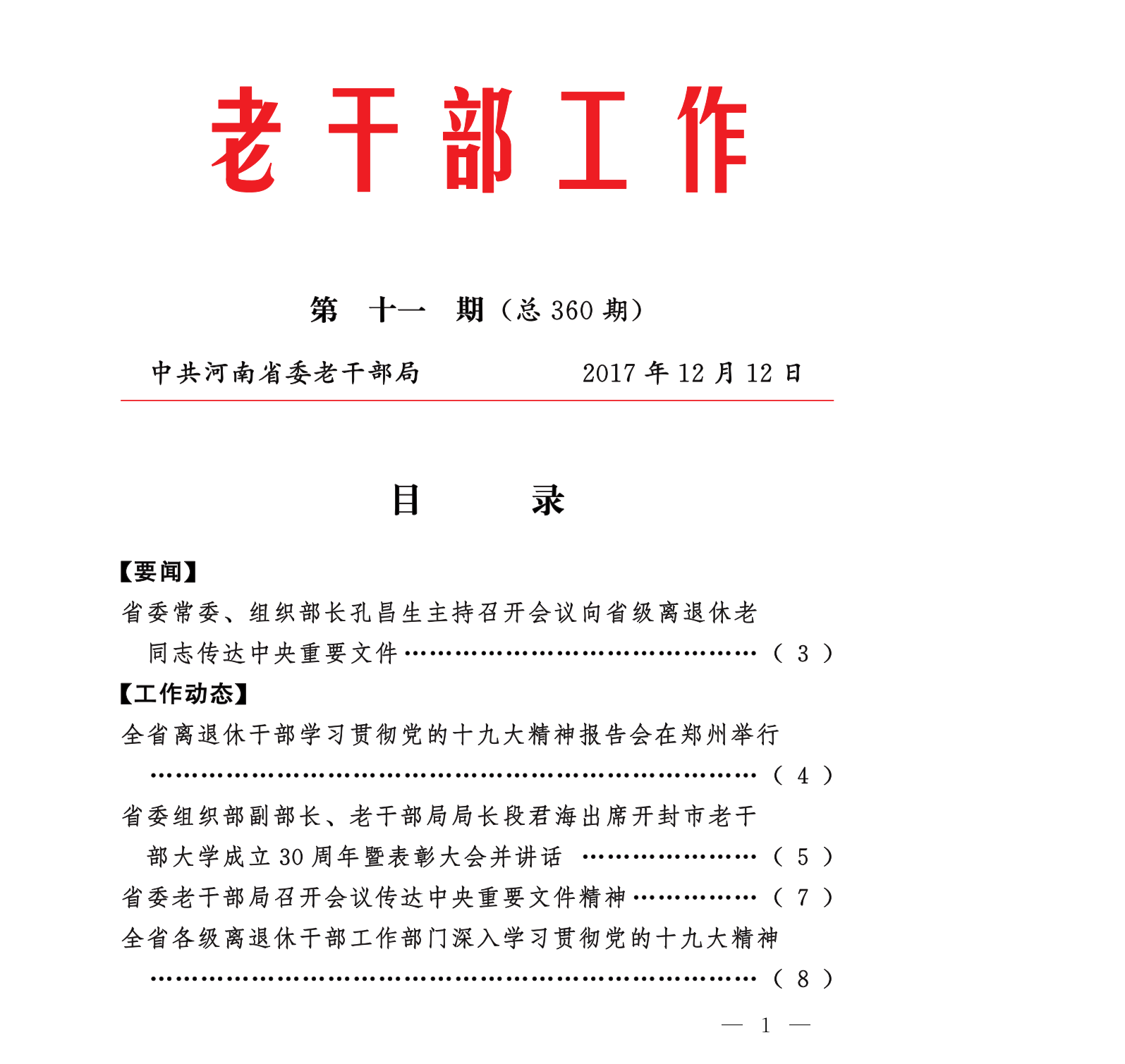 《老干部工作》2017年第11期(目录)