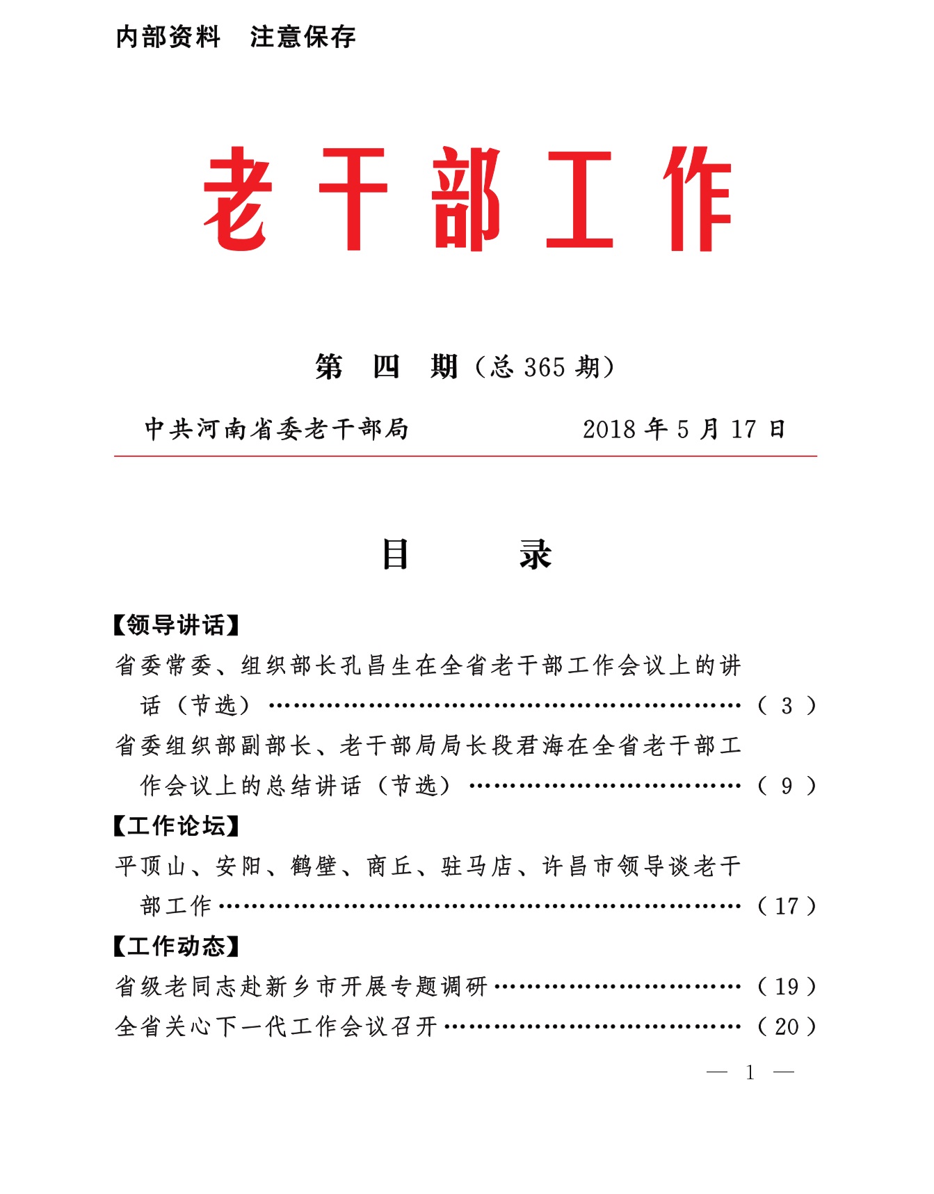《老干部工作》2018年第4期(目录)