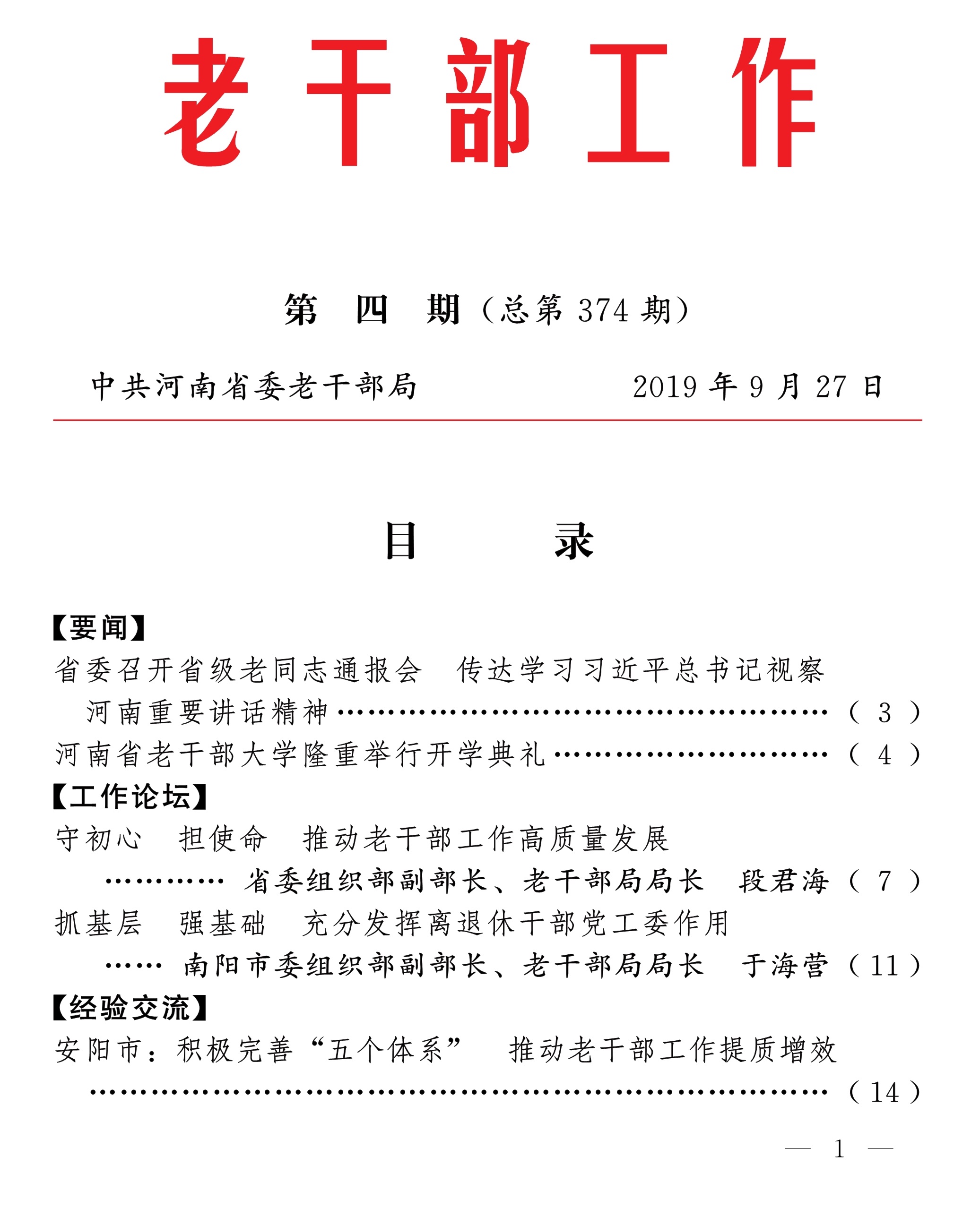 《老干部工作》2019年第4期(目录)